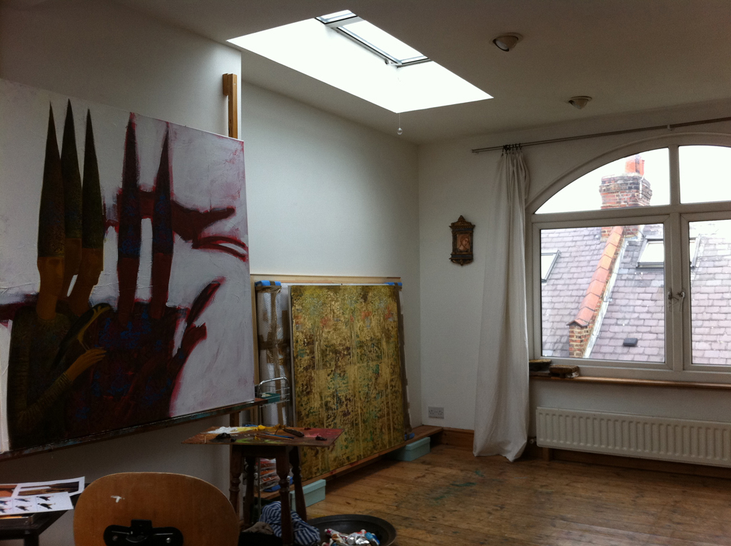 Timur's main studio (above) is the attic of his house in west London.