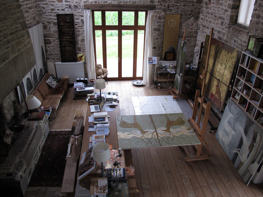 Since 2004 Timur has spent each summer working in a studio he created from a large barn near Pont-Farcy in Normandy, France (above and left).